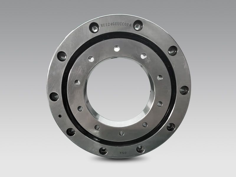 RU系列交叉圓柱滾子軸承(內外圈整體、帶安裝孔)此系列型號由于已進行了安裝孔的加工,就不需要固定法蘭和支撐座。另外,由于采用帶座的的一體化內外環結構,安裝對性能幾乎沒有影響,因此能夠獲得穩定的旋轉精度
