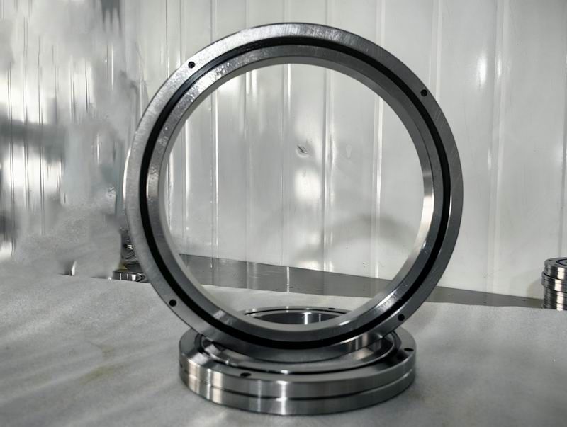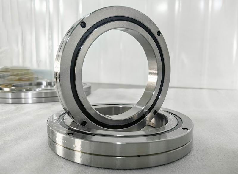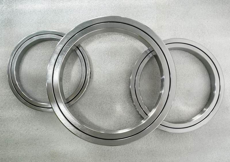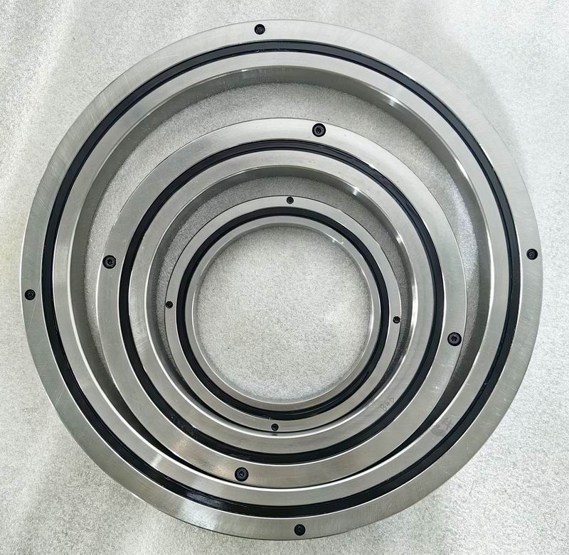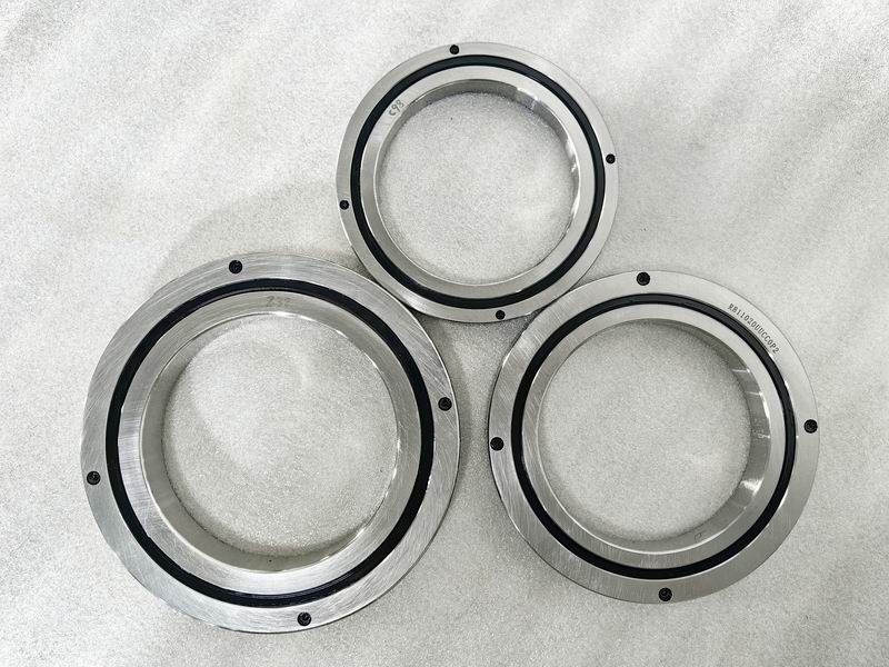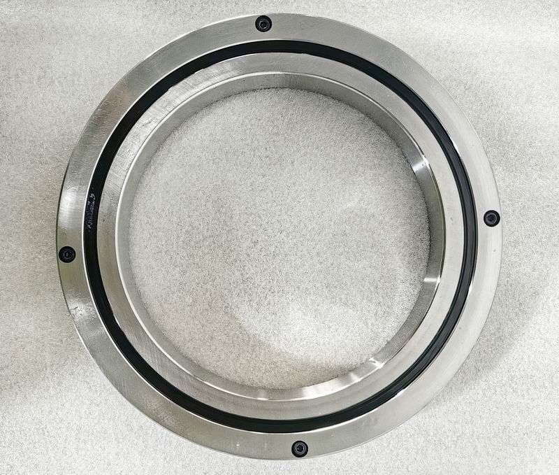 交叉滾子軸承中,由于圓柱滾子在呈 90 ° 的 V 形溝槽滾動面上通過間隔保持器被相互垂直地排列,所以,可承受徑向負(fù)荷、軸向負(fù)荷及力矩負(fù)荷等所有方向的負(fù)荷。內(nèi)外